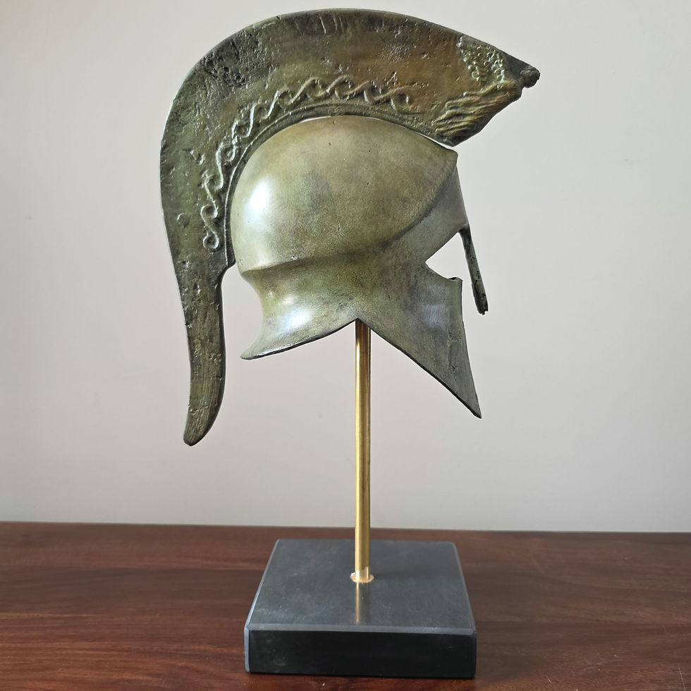 The bronze pieces are cast in Greece using the traditional lost wax method. As nothing is mass-produced, there will inevitably be slight variations in texture, patina, and colour. No two pieces are ever the same. If mounted on a marble base, it will be a black or very dark grey base. There may be a variation of some millimetres in the dimensions of the base from time to time.